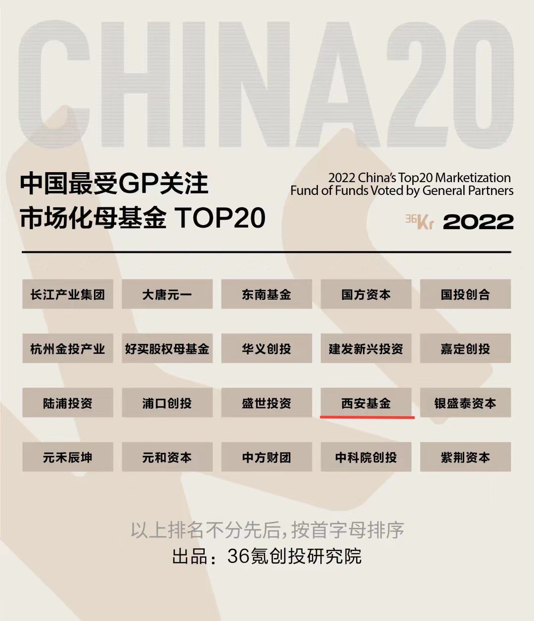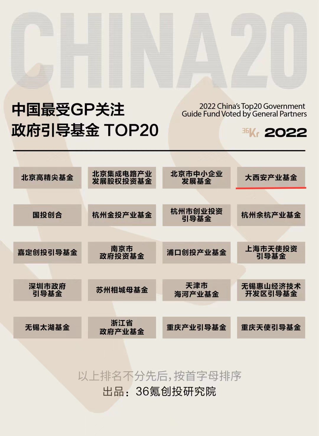 2022年9月21日,在36氪“2022 置身事內(nèi)·中國基金合伙人峰會(huì)”上,36氪創(chuàng)投研究院公布了2022年度「本土市場」、「白馬/黑馬」以及「最受GP關(guān)注LP」三大系列年度榜單。在「最受GP關(guān)注LP」系列榜單中,大西安產(chǎn)業(yè)基金榮獲“中國最受GP關(guān)注政府引導(dǎo)基金TOP20”,西安產(chǎn)業(yè)投資基金管理有限公司榮獲“中國最受GP關(guān)注市場化母基金TOP20”。